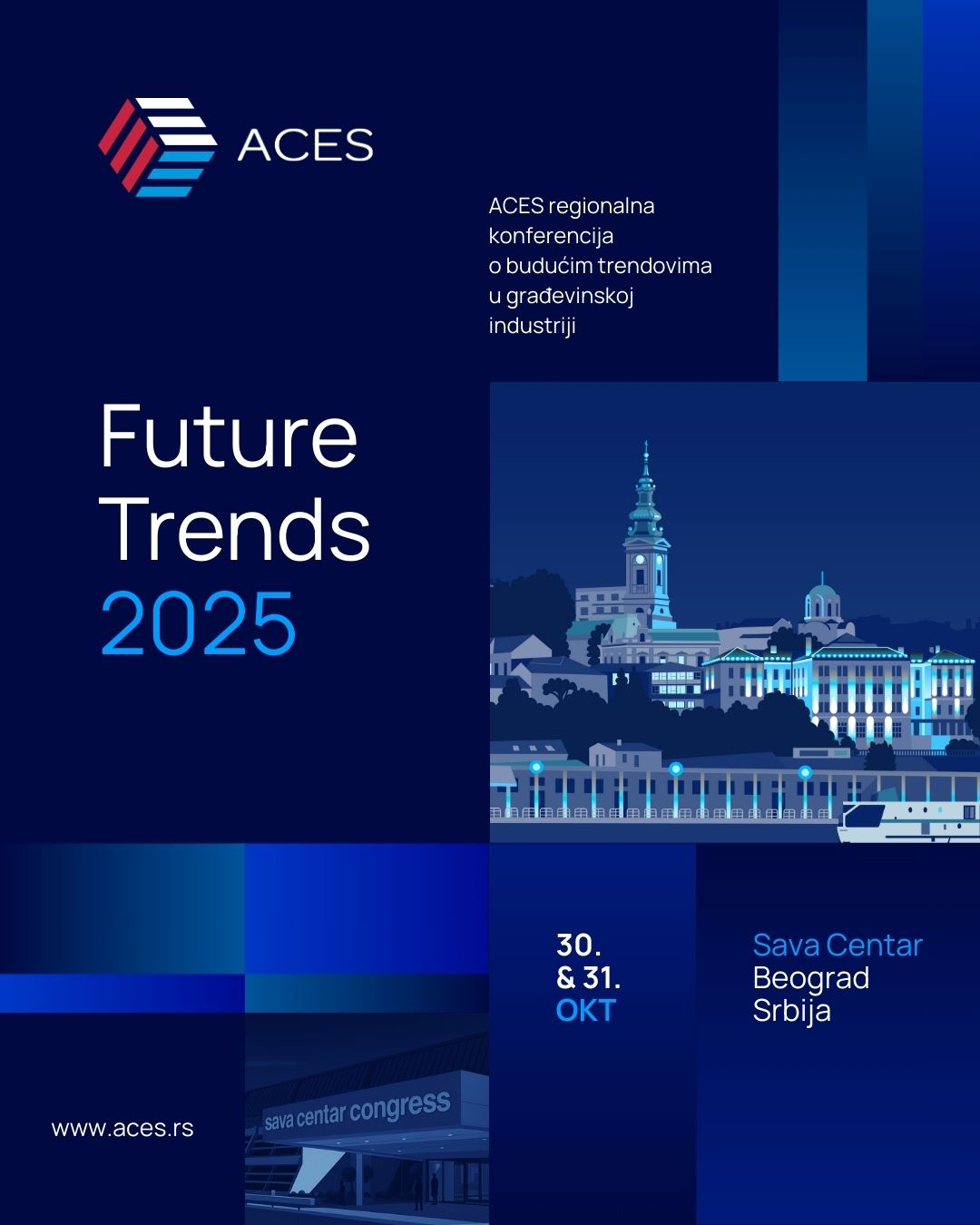 Beograd, 02. 10. 2025 – Udruženje inženjera konsultanata Srbije (ACES), po drugi put zaredom organizuje konferenciju „Budući trendovi u građevinskoj industriji“. To je ključni regionalni događaj koji okuplja aktere iz građevinskog sektora – inženjere, konsultante, advokate, ali i vodeće investitore i izvođače, sa ciljem razmene konkretnih uvida, iskustava i najboljih praksi iz regiona, navodi se u saopštenju za medije.