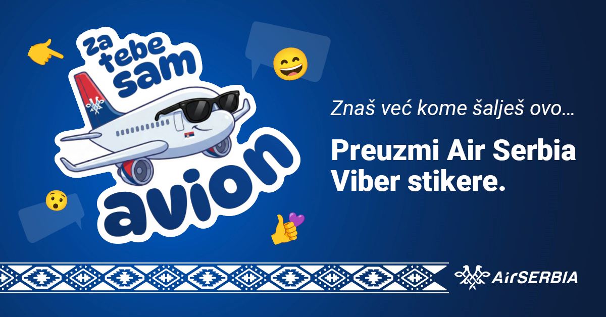 Posebnu novinu u okviru ovog digitalnog kanala predstavljaju AIR SERBIA Viber stikeri, koji su od danas dostupni za preuzimanje svim korisnicima. Preuzimanjem stikera postajete deo AIR SERBIA Viber zajednice. Ovi vizuelno prepoznatljivi elementi brenda osmišljeni su tako da dodatno obogate svakodnevnu komunikaciju i omoguće putnicima da duh putovanja, letenja i identiteta Er Srbije prenesu i u svoje poruke.
