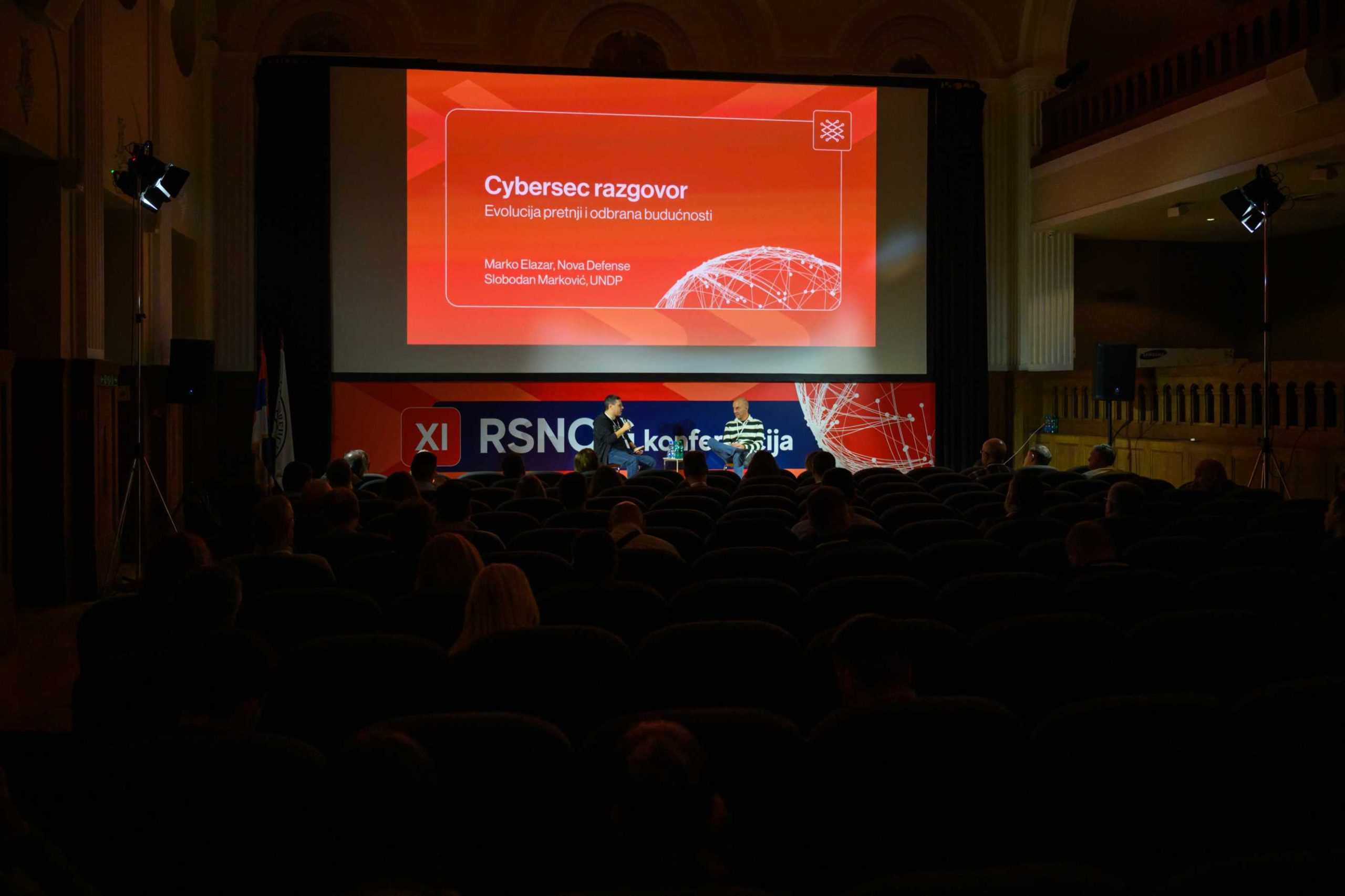 Slobodan Marković iz UNDP analizirao najnovije trendove u oblasti sajber bezbednosti sa Markom Elazarom iz Nova Defense. Elazar je naglasio da najveći tehnološki iskorak trenutno – uspon veštačke inteligencije – dočekujemo kao pojedinci, a ne kao zajednica i da jedino u zajedničkom frontu šireg ekosistema, kombinujući znanja i resurse, možemo da se efikasnije suočimo sa bezbednosnim rizicima koje donosi veštačka inteligencija. Stevan Vučić iz kompanije UN1QUELY predstavio je najčešće propuste koje njegov tim primećuje u mrežama velikih poslovnih i industrijskih sistema širom sveta.