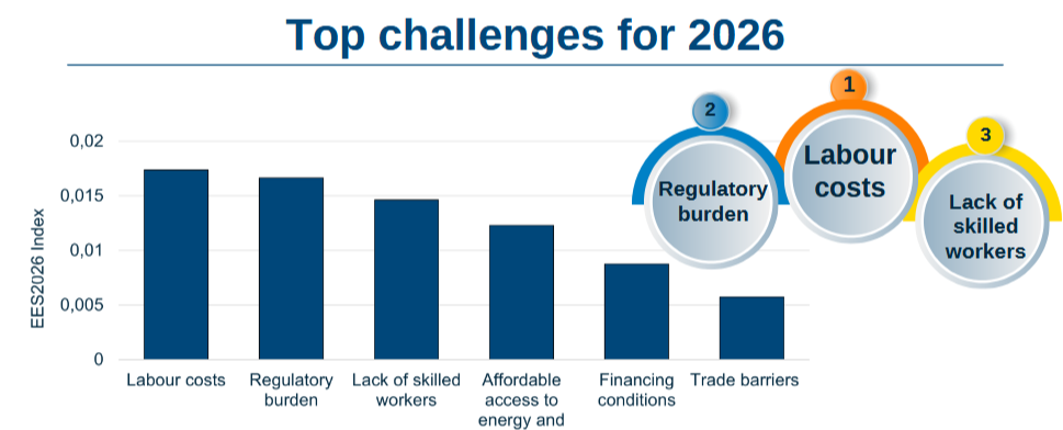 Međutim, očekuje se da će glavni izazovi biti: visoki troškovi rada, složeni i opterećujući propisi EU i geopolitička neizvesnost.