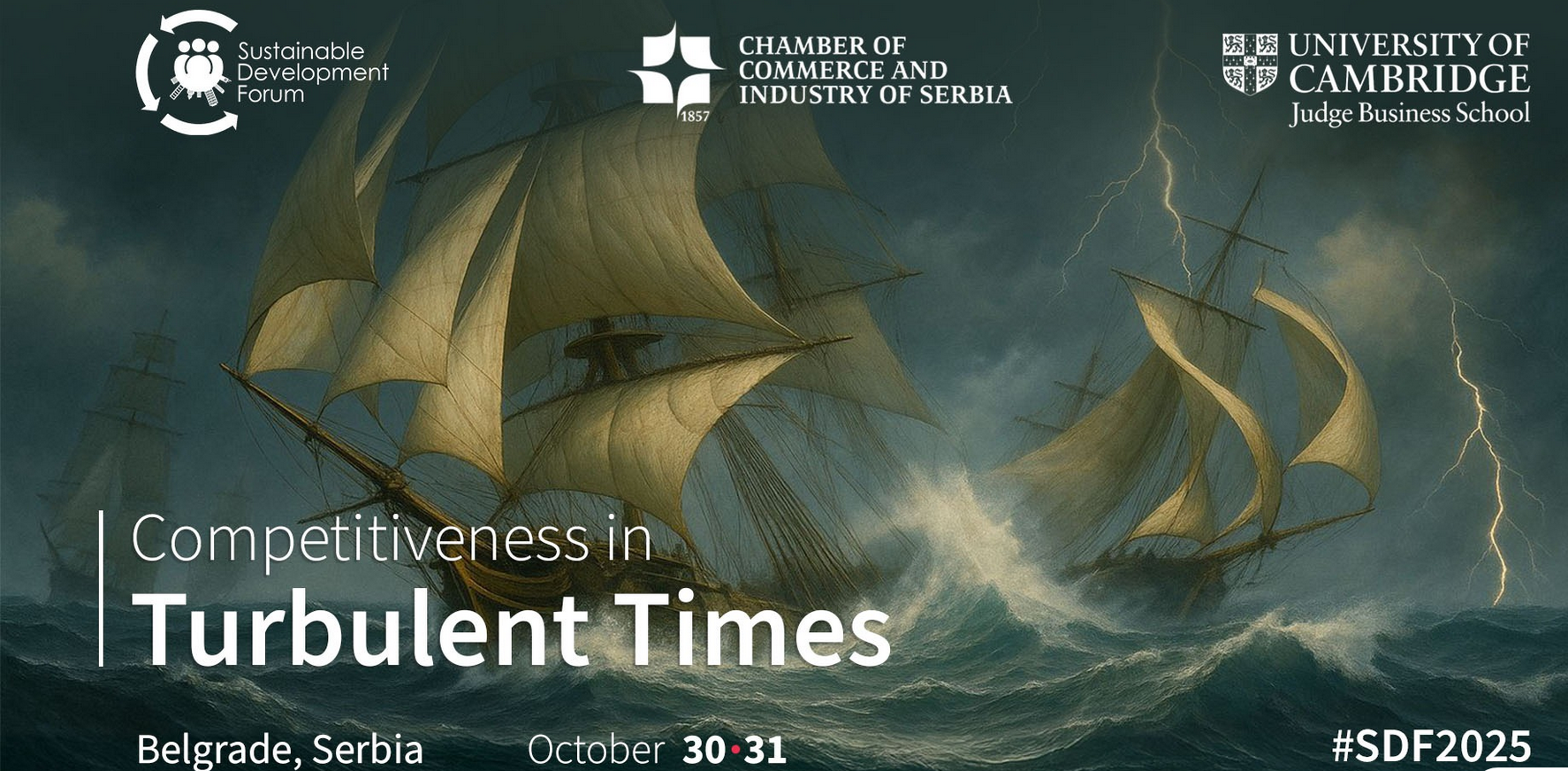 U organizaciji Globalnog foruma za održivi razvoj i uz podršku Privredne komore Srbije i Judge Business School, University of Cambridge, Beograd će 30. i 31. oktobra 2025. godine biti domaćin međunarodne konferencije Sustainable Development Forum 2025: „Konkurentnost u turbulentnim vremenima“, koja će okupiti vrhunske stručnjake, eminentne profesore, diplomate, kao i predstavnike međunarodnih institucija, banaka i kompanija koje ulažu u održivost u hotelu Crowne Plaza, 30. i 31. oktobra, saopštili su organizatori.