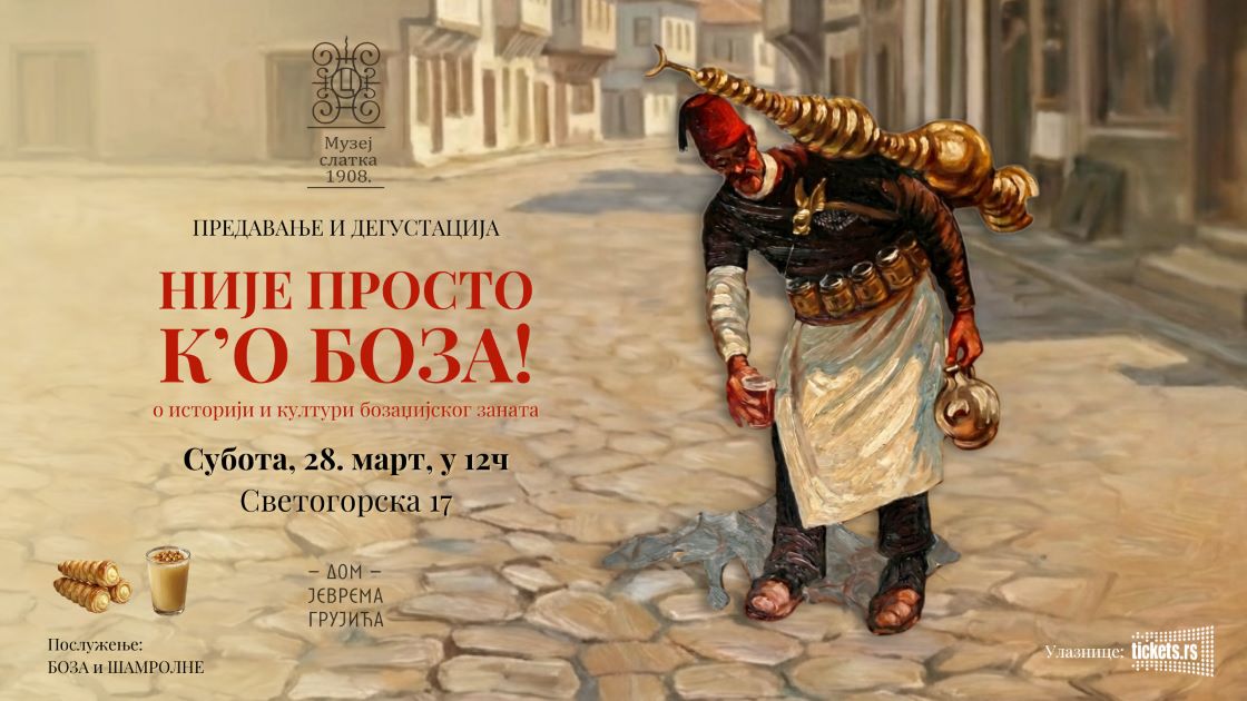 Muzej slatka donosi novu priču o nadaleko poznatom fermentisanom slatkom napitku poreklom sa Bliskog istoka, koji se na Balkanu odomaćio još od osmanlijskih osvajanja Iako karakteristična za tursko stanovništvo, boza se u Srbiji konzumira od početka XIX veka, kada u čaršije stižu zanatlije sa juga: alvadžije, bombonžije, šećerdžije, kolačari, salepdžije i najzad BOZADŽIJE. Predavanje će održati Marina Lukić Cvetić i Lidija Cvetić Vučković, u subotu 28. marta u 12 časova koje će kroz istorijske izvore, književnost i kulturne anegdote predstaviti bogatu tradiciju ovog zanata.
